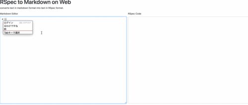 ActionCableと前に作ったMarkdown形式のテキストをRSpec形式のテキストに変換するgemを使ってリアルタイムに変換できるWebエディタを作りました https://markdown-to-rspec-web.herokuapp.com/ ↓Markdown形式のテキストをRSpec形式のテキストに変換するgemに…